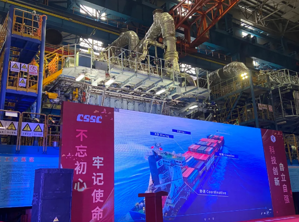 4月2日,中國船舶集團旗下中船動力集團自主研發(fā)的船用低速雙燃料發(fā)動機(CX40DF)首臺機在江蘇鎮(zhèn)江正式出廠交付。