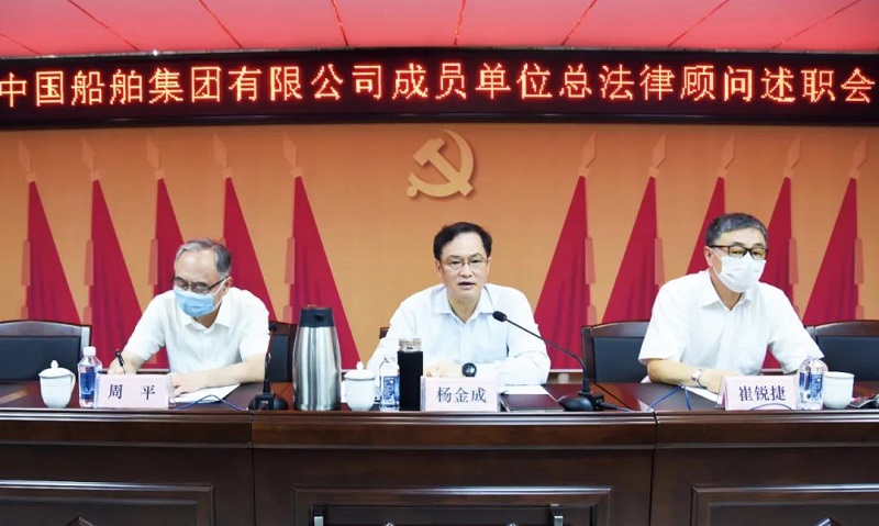 7月31日,中國(guó)船舶集團(tuán)有限公司在武漢以視頻形式召開成員單位總法律顧問述職會(huì)議。中國(guó)船舶集團(tuán)黨組副書記、總經(jīng)理?xiàng)罱鸪沙鱿瘯?huì)議并講話,對(duì)各成員單位總法律顧問2019年開展的工作給予充分肯定,并對(duì)下一步工作提出希望和要求。