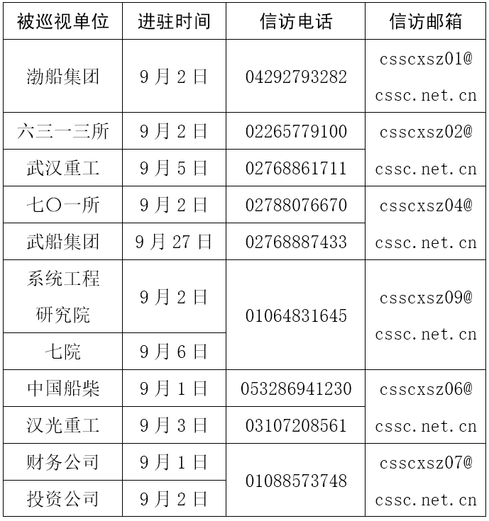 根據集團公司黨組對2021年第二輪巡視工作的統一部署,截至9月6日,集團公司黨組巡視組已基本完成進駐,對渤船集團等單位黨組織開展巡視,現場巡視約40天。