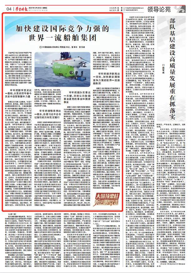 9月29日,《學(xué)習(xí)時(shí)報(bào)》刊發(fā)中國(guó)船舶集團(tuán)黨組書記、董事長(zhǎng)雷凡培署名文章《加快建設(shè)國(guó)際競(jìng)爭(zhēng)力強(qiáng)的世界一流船舶集團(tuán)》,現(xiàn)全文分享如下。