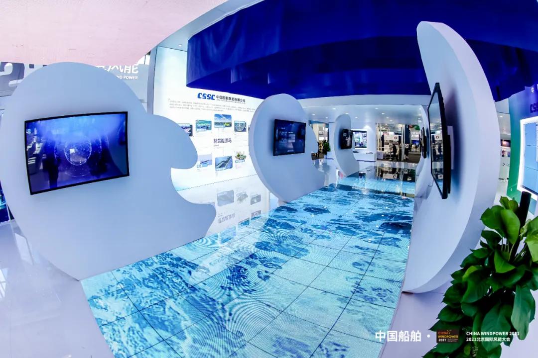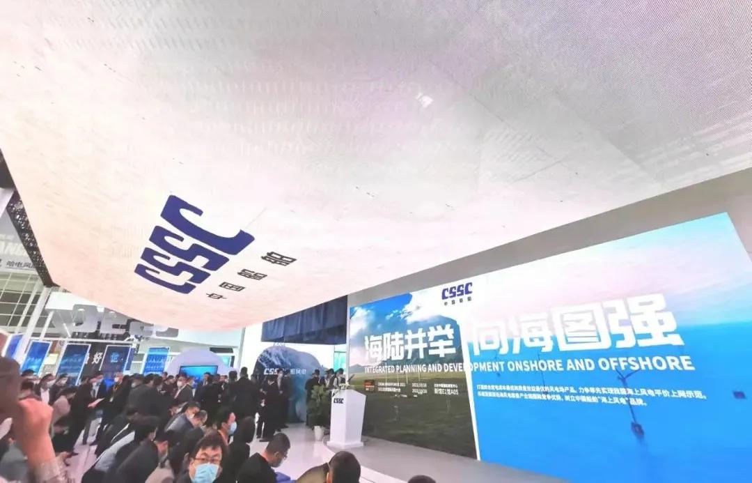 此次展會上,中國船舶集團以“創新引領、綠色發展強使命,海陸并舉、向海圖強顯擔當”為主題,在900平方米的歷屆風能展最大展臺上,按照建設開發、整機制造、關鍵核心部件和產業配套四個版塊分區展出。