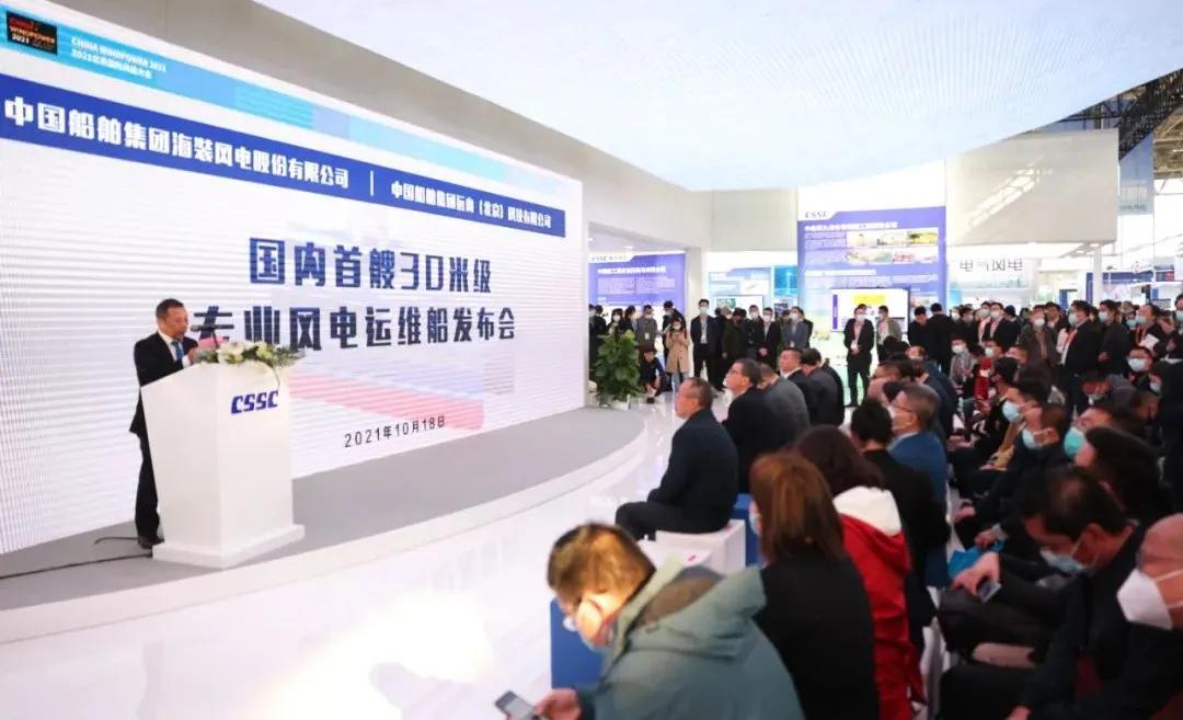 在風能展上,中國海裝與遠舟科技聯合設計制造的國內首艘30米級專業風電運維船發布,最大裝載38噸,可抗浪高4米,可搭乘12名運維人員和6名船員,具有高強度、輕重量的結構特點和優良的安全性、快速性、防腐性、耐波性等,將于今年正式投運。