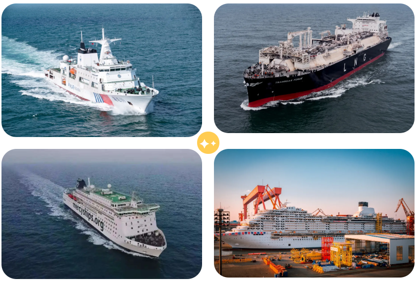 ——廣船國際交付3 型4艘豪華客滾船,中國船舶集團制造的市場品牌影響力不斷提升;江南造船交付1 艘國內最大海洋綜合科考實習船“中山大學”號、黃埔文沖交付1艘萬噸級海事巡邏船,標志著中國船舶集團在公務科考船領域取得了又一突破;大船重工交付一艘世界最大最先進的民用醫院船、黃埔文沖交付2 艘全球最大火車運輸船、中船澄西交付2 艘910RFEU 冷藏集裝箱船,彰顯了中國船舶集團在高端特種船舶等領域蓬勃發展的先發優勢和產品轉型升級的豐碩成果。