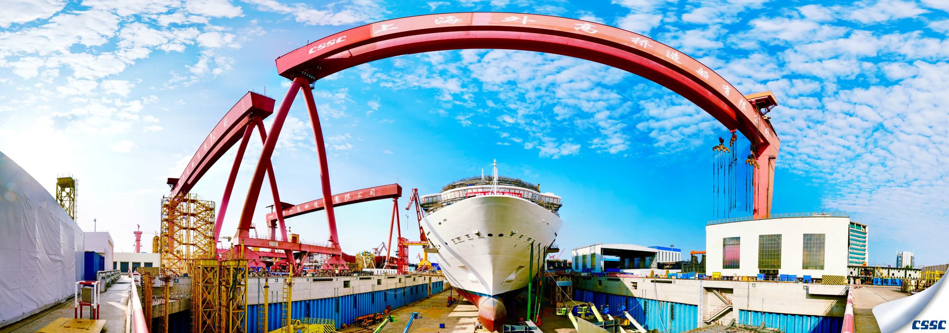 艷陽下的外高橋造船基地,半遮面紗的中國(guó)首制大型郵輪矗立其中,天地之間都似是她的舞臺(tái),讓我們翹首以待她真正的芳容吧。