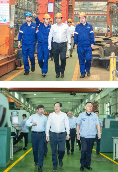 在武昌造船,楊金成深入生產一線詳細了解情況,并聽取了武昌造船關于生產經營和未來發展規劃的匯報。在東儀科工,楊金成前往生產車間調研產品生產情況,并聽取了七〇五所/中船華雷及東儀科工關于生產經營及發展規劃的匯報。