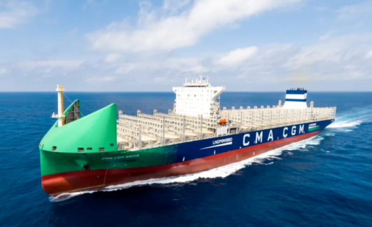 滬東中華為法國達(dá)飛海運(yùn)建造的13000TEU雙燃料動力集裝箱船“CMA CGM BAHIA”號