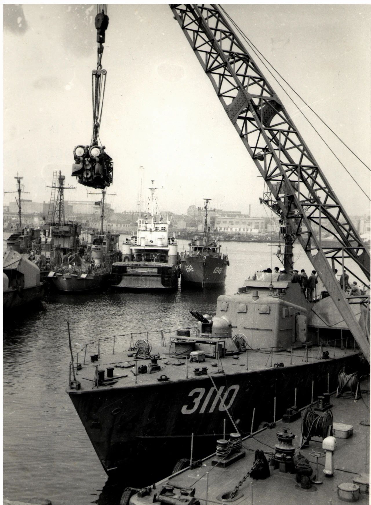 1958年廣州,1958年,廣船國際的前身廣州造船廠的造船塢,圖中的履帶式起重機是廣州造船廠主要的起重設備。