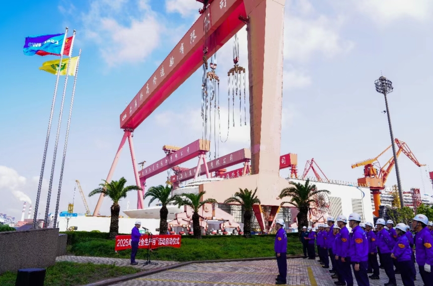 6月3日,中船集團全級次舉行2025年“安全生產月”啟動暨升安全旗活動——