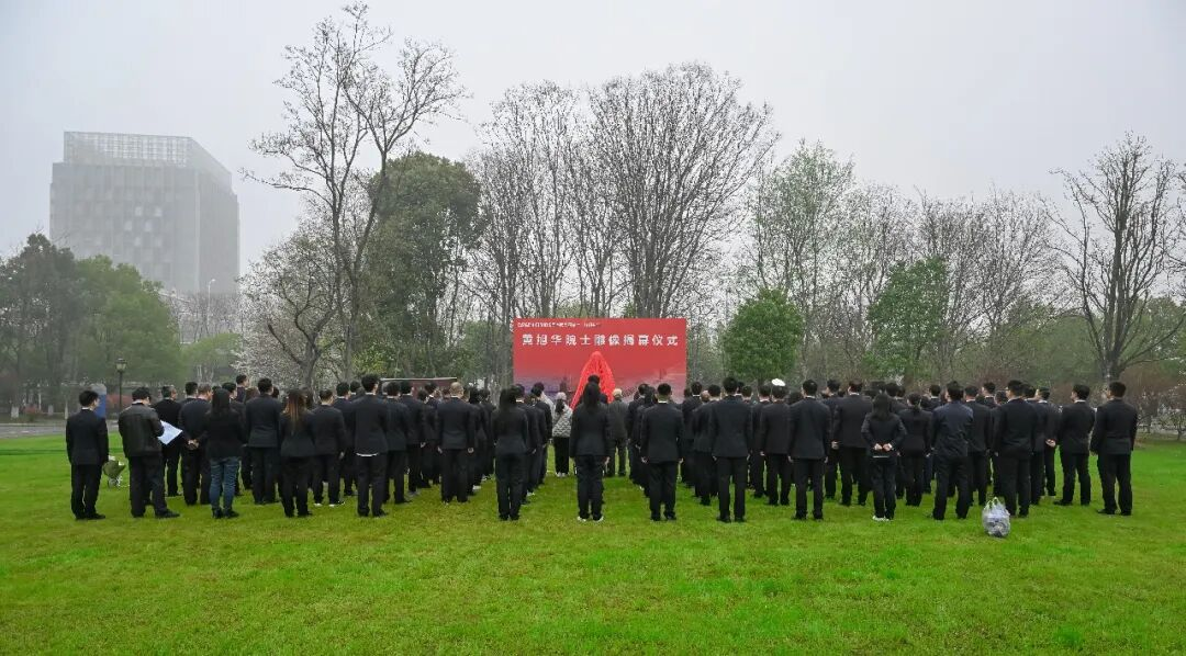 儀式現場莊嚴肅穆,人員整齊列隊,屏幕滾動播放兩位院士先進事跡。雕像揭幕后,全體人員三鞠躬、獻花致敬。老領導、老專家與青年代表發言,追憶崢嶸歲月,傳承院士精神,展現中船人接續奮斗的擔當。