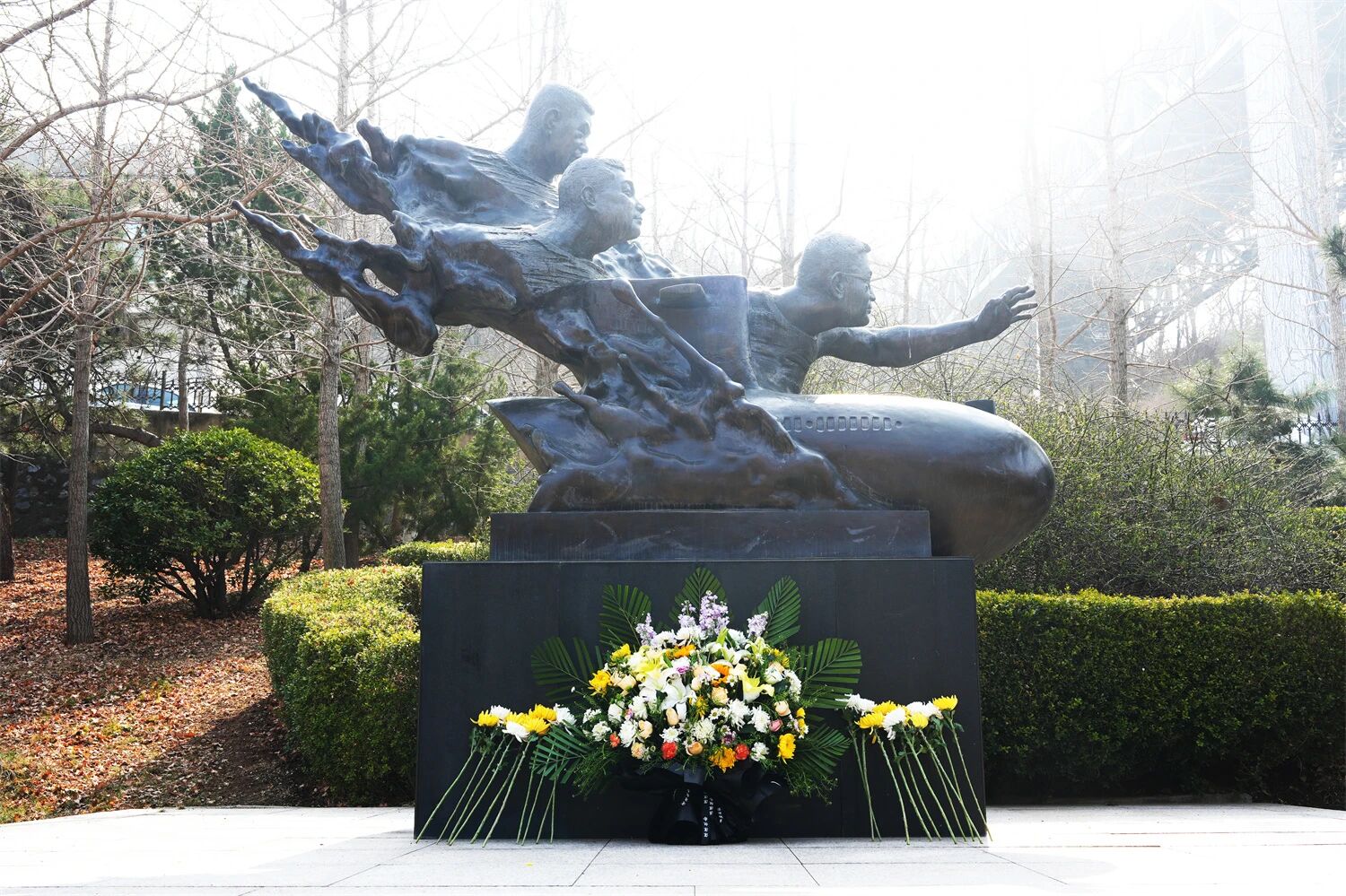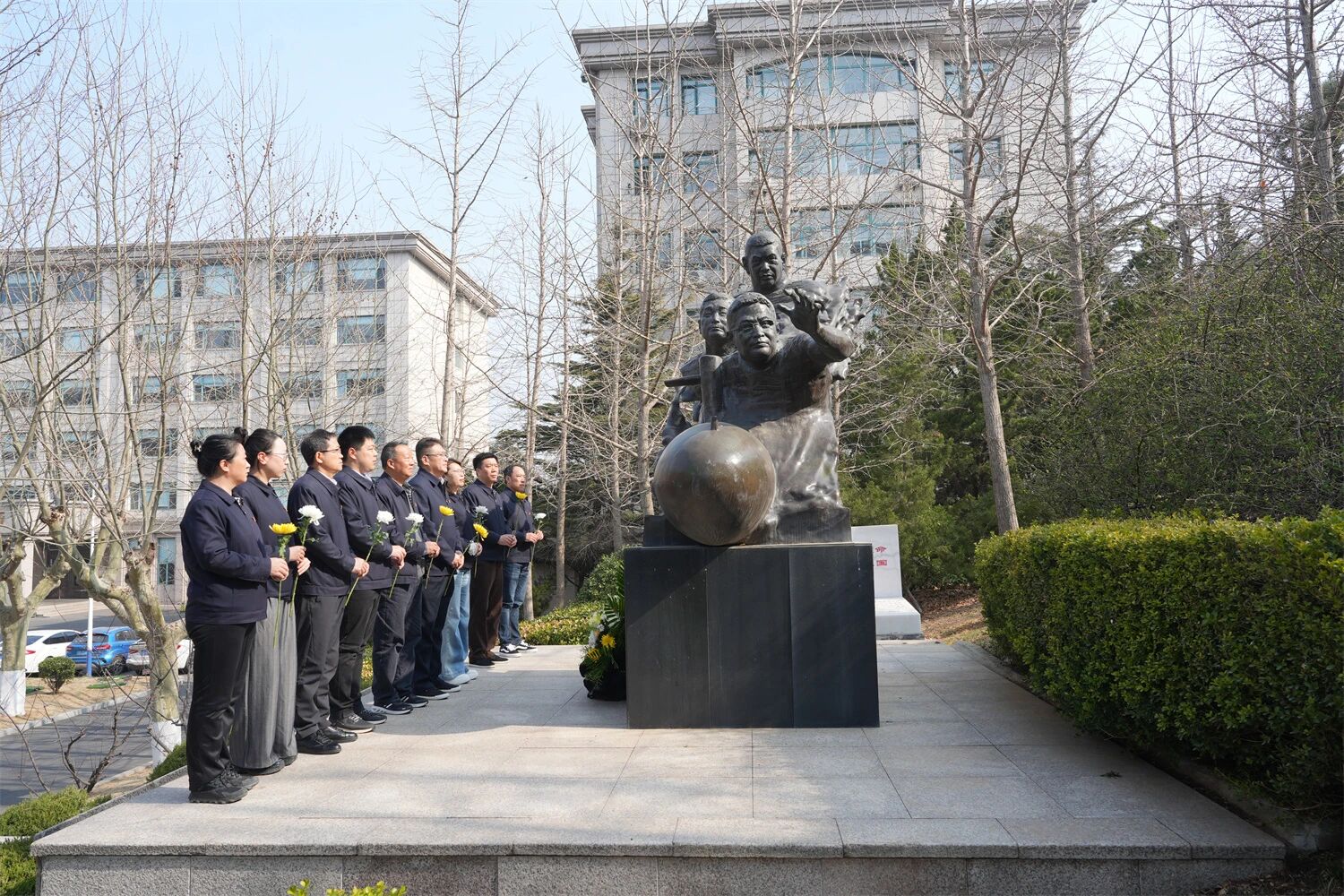 該所班子成員,時代楷模、抗災搶險英雄群體代表,志愿者及青年職工等,向為保護國家重點試驗平臺壯烈犧牲的黃群、宋月才、姜開斌三位英雄雕像獻花,傳承弘揚英雄精神,緬懷烈士,遙寄思念。