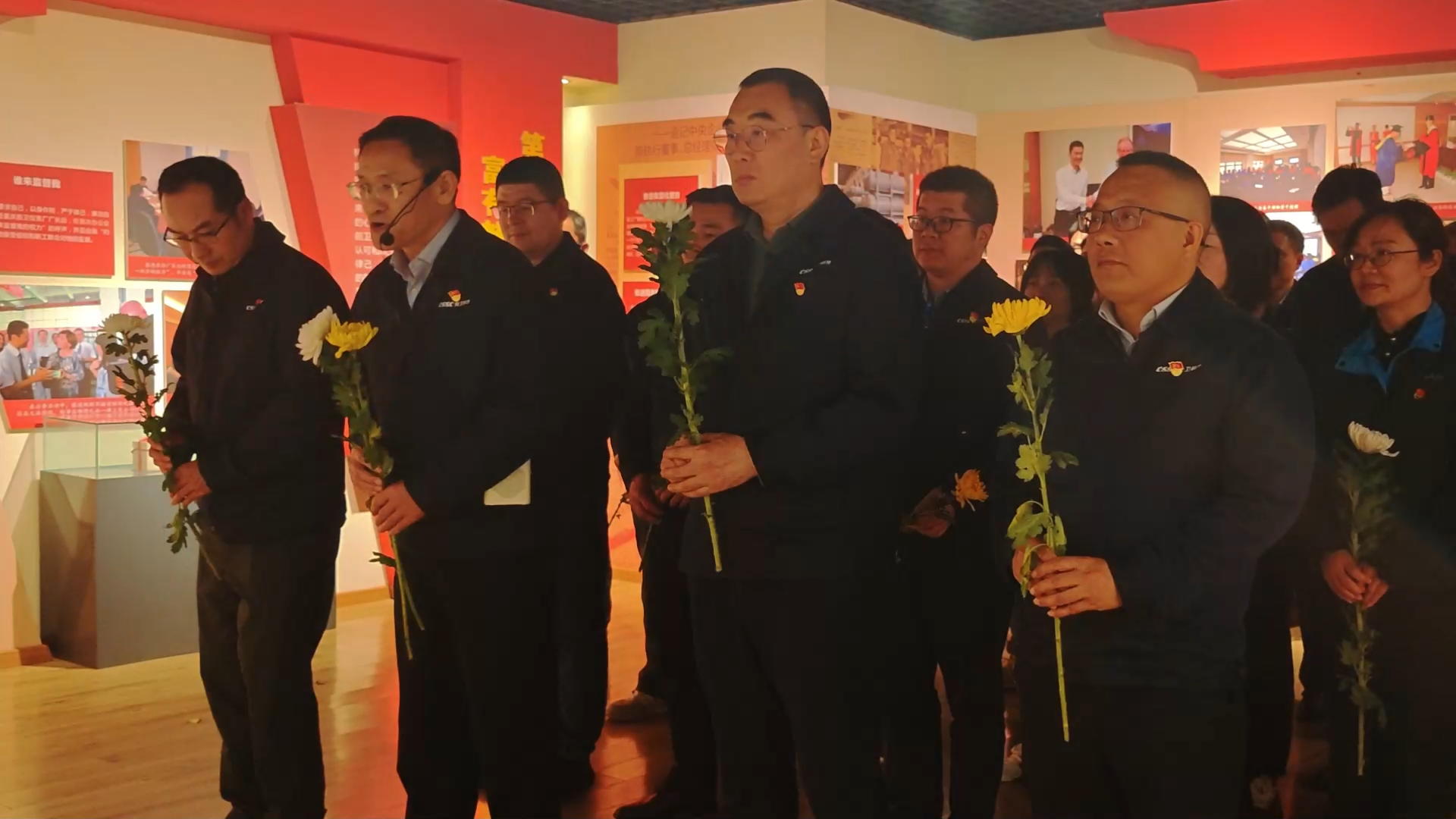 面向張進同志遺像,全體人員整齊列隊,鞠躬默哀、敬獻鮮花,以樸素莊重的方式表達深切哀思與崇高敬意。