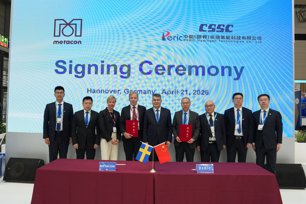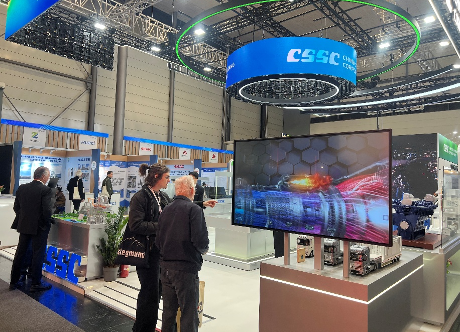 展會期間,中船集團與瑞典Metacon公司舉行7.5MW堿性制氫設備項目合同簽約儀式,并舉辦綠色智能產品技術現場推介等多場專題活動,主動高效開展產品技術服務推介和CSSC品牌國際化推廣,持續吸引國際客戶前來交流探討合作機遇。在展會內接待拜訪多家現有及潛在合作企業,深化既有合作共識、拓展合作新場景,為后續進一步提升共贏合作水平創造有利條件。