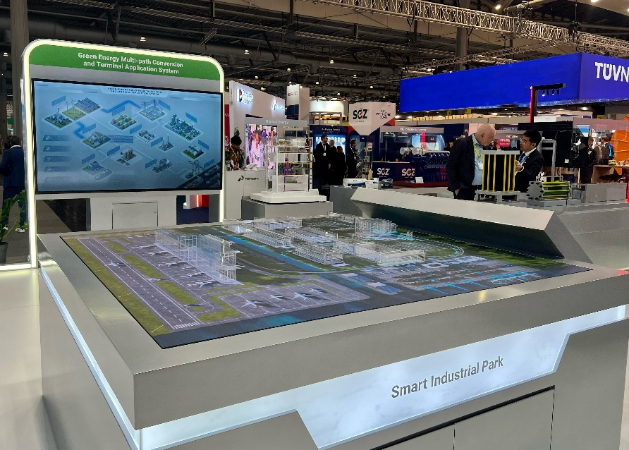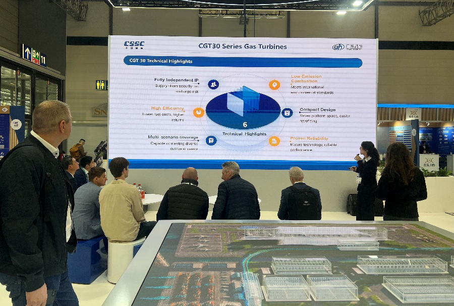 此次展會,中船集團緊扣全球工業低碳轉型與智能升級前沿趨勢和“前瞻科技”(Think Tech Forward)展會主題,聚焦能源基礎設施和儲能技術展區專題,高光展現綠色清潔能源裝備、高端智能能源裝備的硬核技術實力與系列創新成果,包括綠色低碳燃氣輪機移動電站、大功率天然氣發電機組、高性能綠色氫能裝備、智慧工業園區整場解決方案、機場與軌道交通一體化智能解決方案、高端節能換熱裝備、氫能用鈦基材、工業超低溫制冷裝備、智能監測裝備等,直觀呈現船舶先進技術積淀與研發制造實力在新興產業領域的高效轉化,充分彰顯中船集團新興產業的技術創新力和國際競爭力,積極助力新興產業國際市場開發和高質量發展。展臺采用現代工業質感設計風格和裸眼3D、多點觸控、交互沙盤等高效展示手段,構建“內圓外方、數智共生”的展臺形象,多維展現中船集團新興產業的重要成果和未來前景,立體呈現CSSC的品牌實力、產品實力和科技實力。