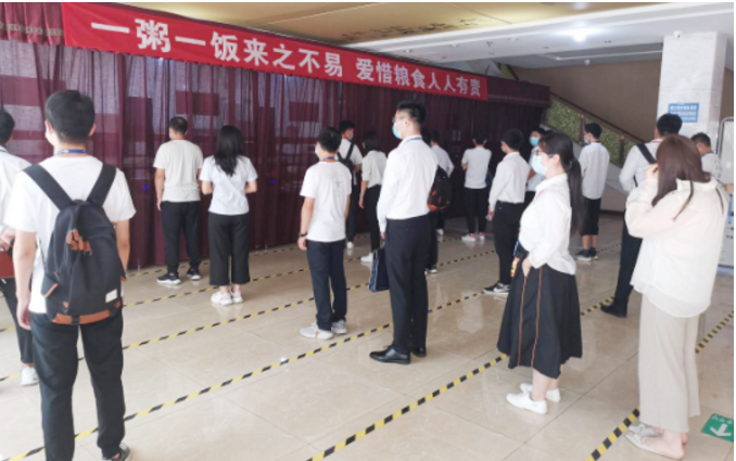 午飯時間,七一六所食堂門口一場“光盤行動”宣傳活動正如火如荼進行。發放節約糧食、反對浪費宣傳冊,引導職工參與光盤行動簽字活動……在食堂取餐窗口,職工們秩序井然,按需取餐。在收殘處,職工們將吃干凈的空碗盤有序放到傳送帶上,見此情形,值守在此處的志愿者快步迎上去,為光盤的職工佩戴一枚特制的紀念章。隨著疫情防控形勢變化,七一六所增加自選餐窗口,減少套餐窗口。一增一減,讓員工吃飯有了更多自主權。吃多少拿多少,自8月增加自選餐以來,職工光盤率顯著提高。同時,改變打餐就餐方式后,打包餐盒使用量也減少到以前的1/10,食堂食材使用率也明顯提升。
