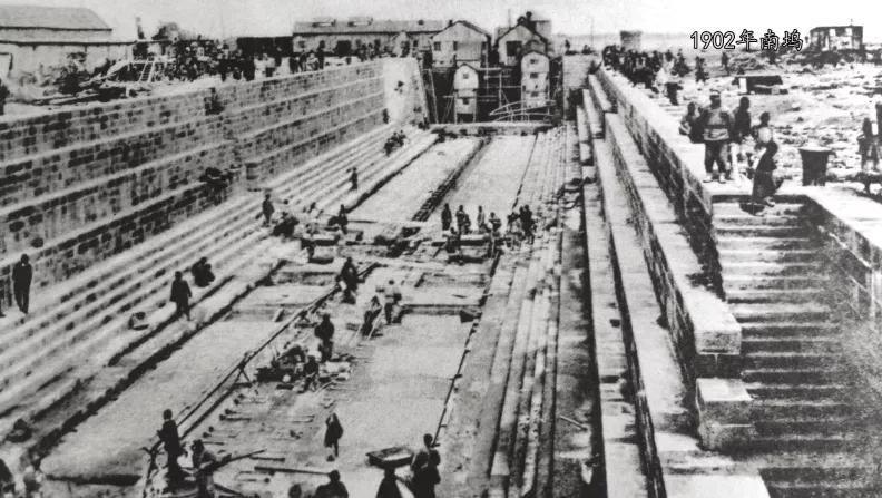 修船南塢始建于1899年,1902年底初建完工,長(zhǎng)116米、寬13米、深7.6米,采用兩開式扉門,并配備電動(dòng)排水泵。
