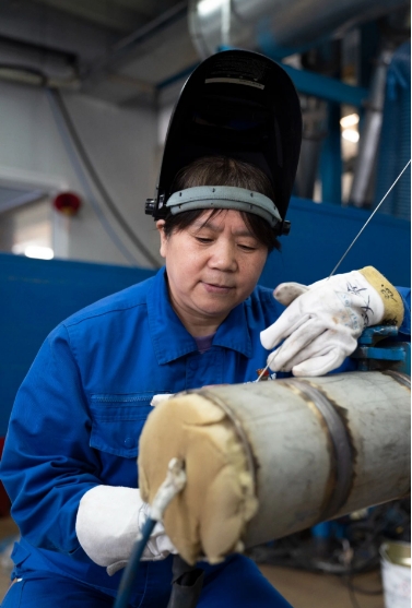 至今,朱瑞霞已經參與了“遠望”系列船、“雪龍2”號、南昌艦等國家重點項目的焊接工作。她說,當時有人高度評價稱:“你焊的管子可以免檢。”但壓力也隨之而來,“我當時就想,船一出海就是半年,我的焊接要是出問題,就是人命關天。”正是因為這種“軸”,朱瑞霞先后攻克了鎳銅管焊接變形、HDR不銹鋼焊接、鈦合金焊接等一系列高難度問題。她主導研發了十余項焊接專利技術,攻克了薄壁管道焊接難題,還創新研制了特有的工裝,獲得外國專家的認可和推廣應用。