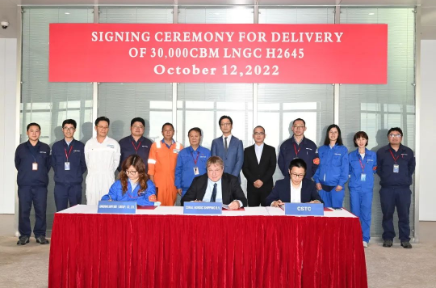 10月12日,中國船舶集團(tuán)旗下江南造船為荷蘭船東Anthony Veder公司設(shè)計(jì)、建造的30000立方米液化天然氣(LNG)運(yùn)輸船“Coral Nordic”號在上海簽字交付。