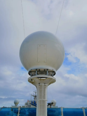站在煙囪下面往船艏方向看,正對著1個大球,前前后后,愛達·魔都號的頂部共有5個同款大球,它們分別用于收發(fā)來自衛(wèi)星的電視和網(wǎng)絡信號,船上“5G+WIFI”網(wǎng)絡系統(tǒng)和艙室的IPTV就是在它們的加持下才得以實現(xiàn)。