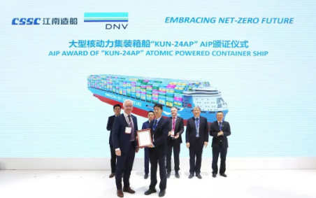 全球首型、世界最大24000箱核動(dòng)力集裝箱船船型發(fā)布,挪威船級(jí)社(DNV)頒發(fā)了該船型的原則性認(rèn)可證書(shū)。