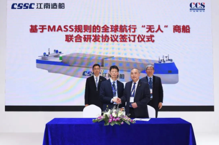 此外,與中國(guó)船級(jí)社簽訂面向MASS(海上自主水面船舶)規(guī)則應(yīng)用的全球航行“無(wú)人”商船聯(lián)合研發(fā)協(xié)議。