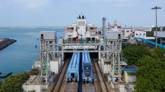 搭載2組復興號動車組過海的是“粵海鐵1號”“粵海鐵2號”火車渡船。這2艘船均由中國船舶集團旗下七〇八所設計、江南造船建造,其中,“粵海鐵1號”是我國第一艘自行設計、自行建造的跨海火車渡船,該船于2003年1月投入運營,結束了海南島與外省不通火車的歷史。