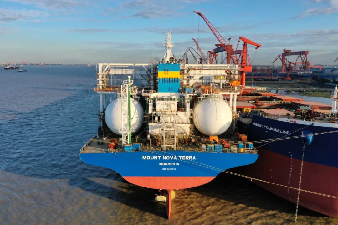 1月28日,中國船舶集團(tuán)旗下外高橋造船自主研發(fā),攜手中船貿(mào)易,為新加坡EPS公司建造的全球首艘液化天然氣(LNG)雙燃料動力20.9萬載重噸紐卡斯?fàn)栃蜕⒇洿?