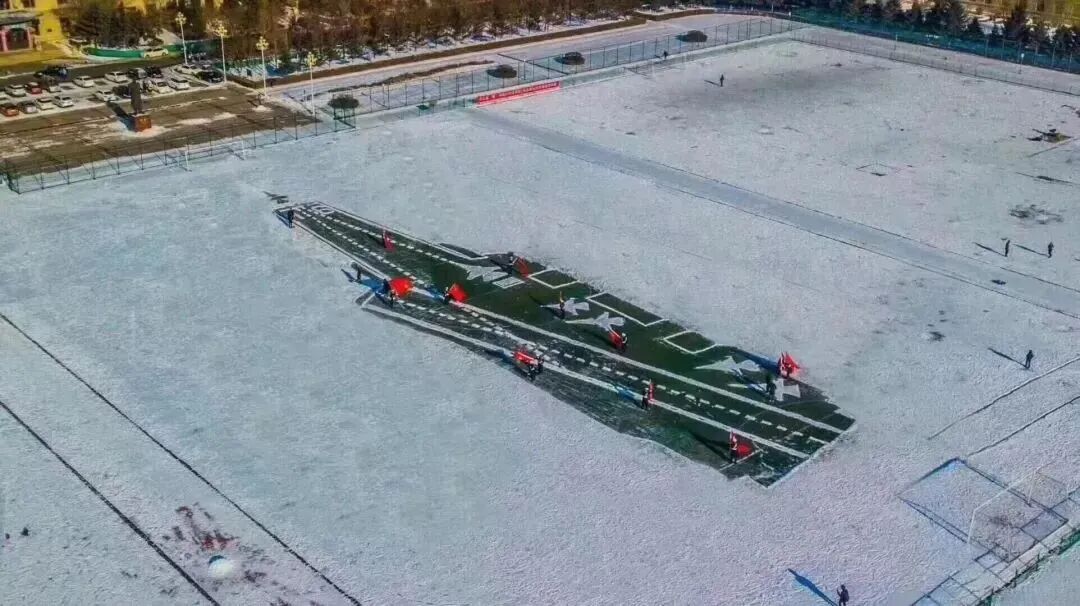 學校操場上,出現了“福建艦”