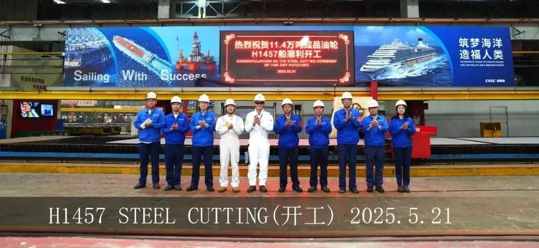 5月21日,外高橋造船為土耳其YASA公司建造的11.4萬噸阿芙拉型油船H1457船開工儀式順利舉行。目前,各項生產準備工作均在按計劃落實。